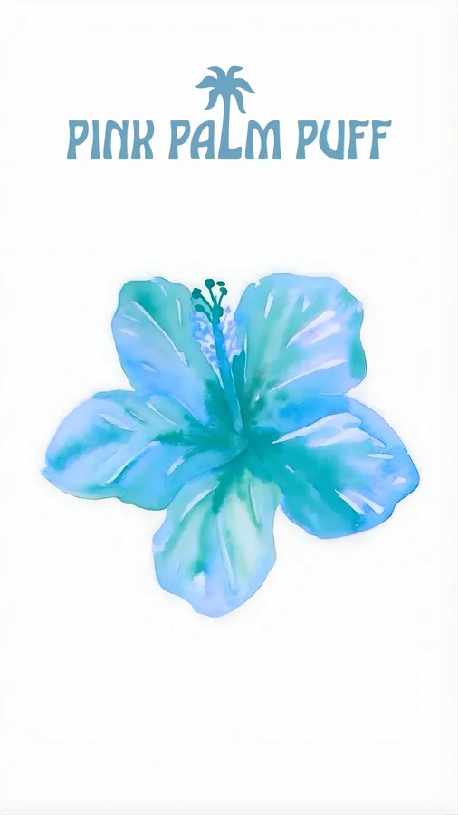 Elegant Blue Hibiscus Flower Logo With Tropical Palm Icon For Pink Palm Puff Brand Identity