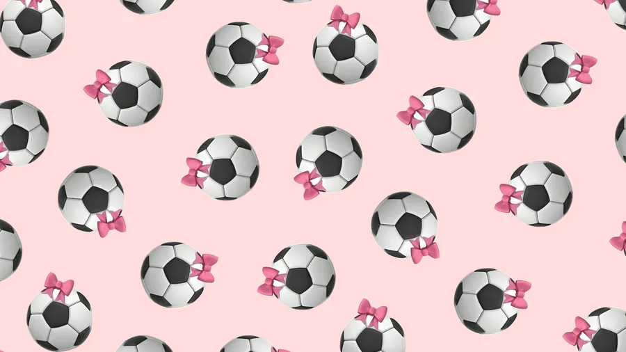 Cute Soccer Balls With Pink Bows On A Soft Pink Background Perfect For Preppy Sports Designs And Stylish Soccer-themed Decor.