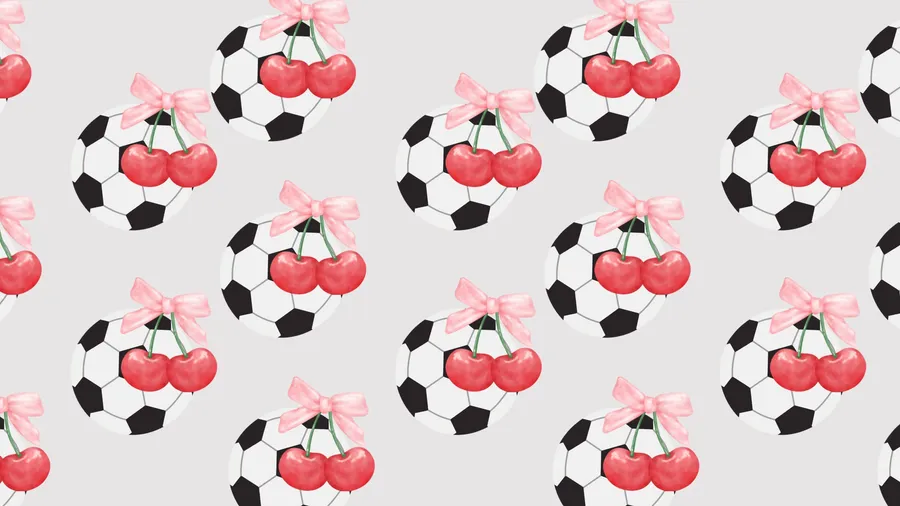 A Playful Pattern Combining Classic Black And White Soccer Balls With Bright Red Cherries, Perfect For Preppy Sports-themed Designs And Apparel.