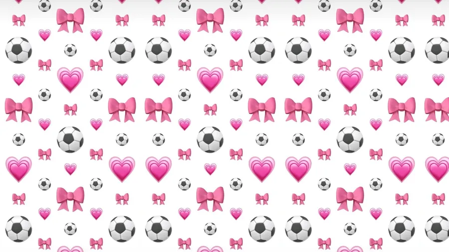 Cute Seamless Pattern Featuring Soccer Balls, Pink Bows, And Hearts Perfect For Preppy Sports-themed Designs And Apparel.