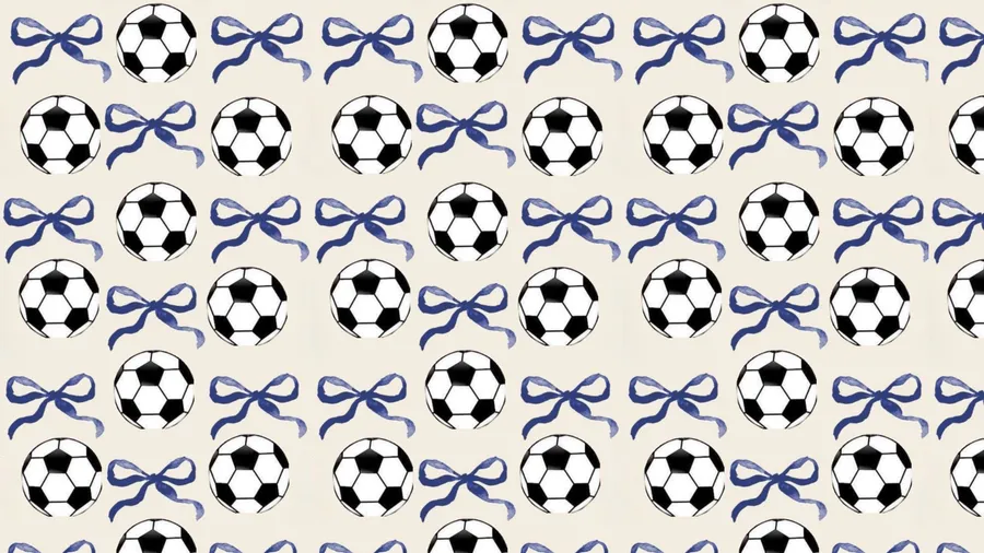 Seamless Design Featuring Classic Black And White Soccer Balls Paired With Elegant Navy Blue Bows On A Cream Background, Perfect For Stylish Sports-themed Decor And Apparel.