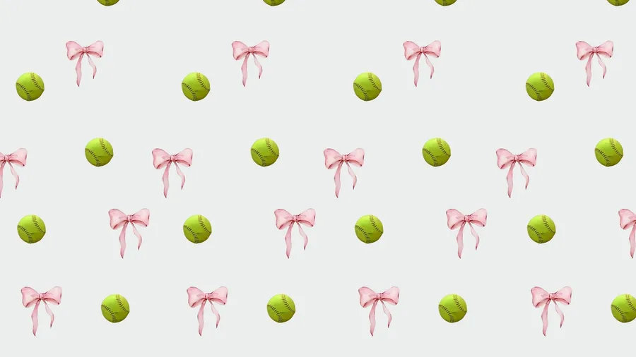 Softball And Pink Bow Pattern Perfect For Preppy Softball Designs And Accessories With A Clean White Background And Repeating Elements