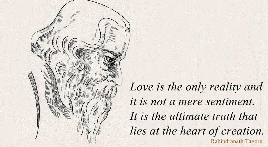 Sketch Of Rabindranath Tagore's Profile With His Quote On Love And Reality.