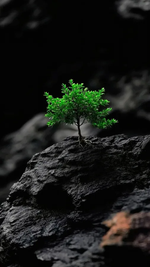 Tree,nature,growth,resilience,rock,green,black Background,minimalist,hope,strength,wallpaper