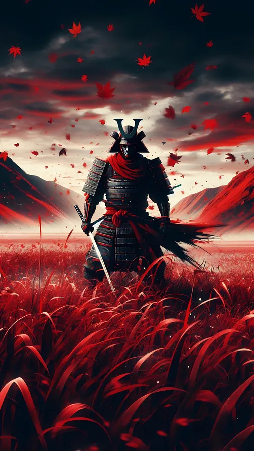 Samurai,samurai War,red Field,illustraiton,samurai Art,hills,mountains Background,scenery,samurai Scenery,red Mountains