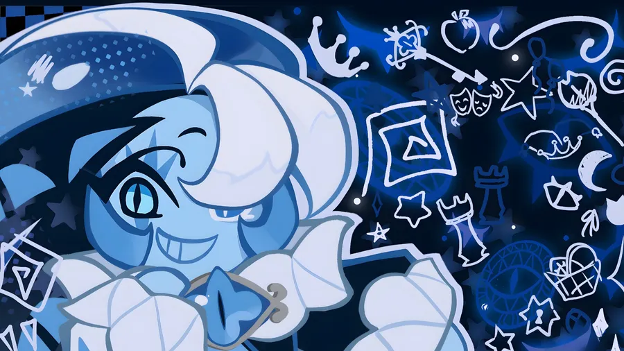 Dark Themed Shadow Milk Cookie Illustration Featuring Mystical Symbols And Playful Expression