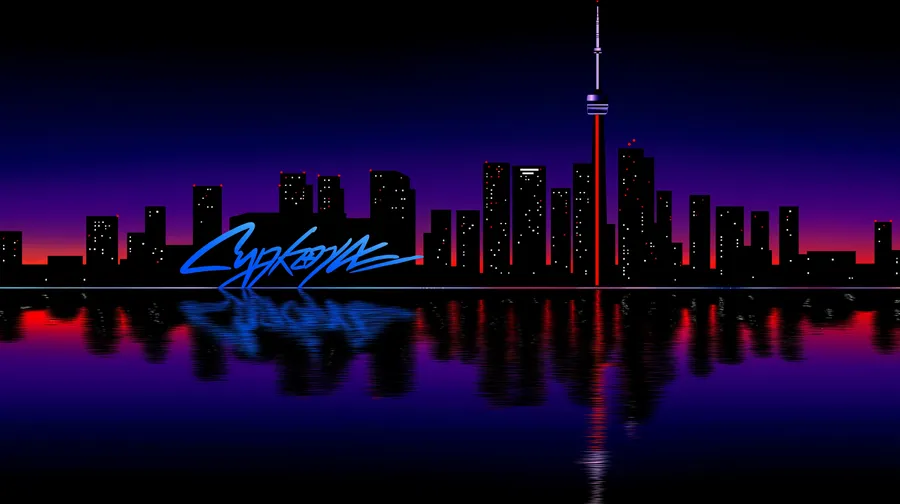 Skyline,urban,city,neon,futuristic,reflection,night,minimalist,graphic,architecture,modern,abstract,digital,tower,stylized