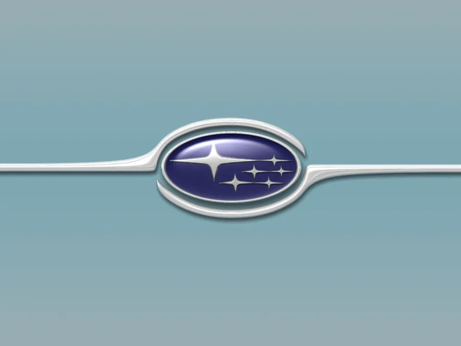 A Charming Design Featuring The Subaru Logo In A Simple And Soft Looking Design With Silver Detailing And Soft Blue Background.