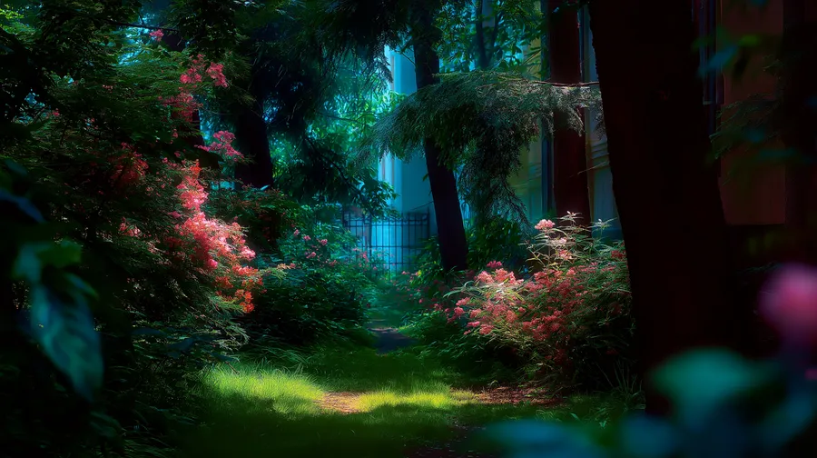 Forest,path,trees,foliage,gate,nature,woods,sunlight,greenery,tranquil,serene,enchanting,mysterious,outdoor,landscape
