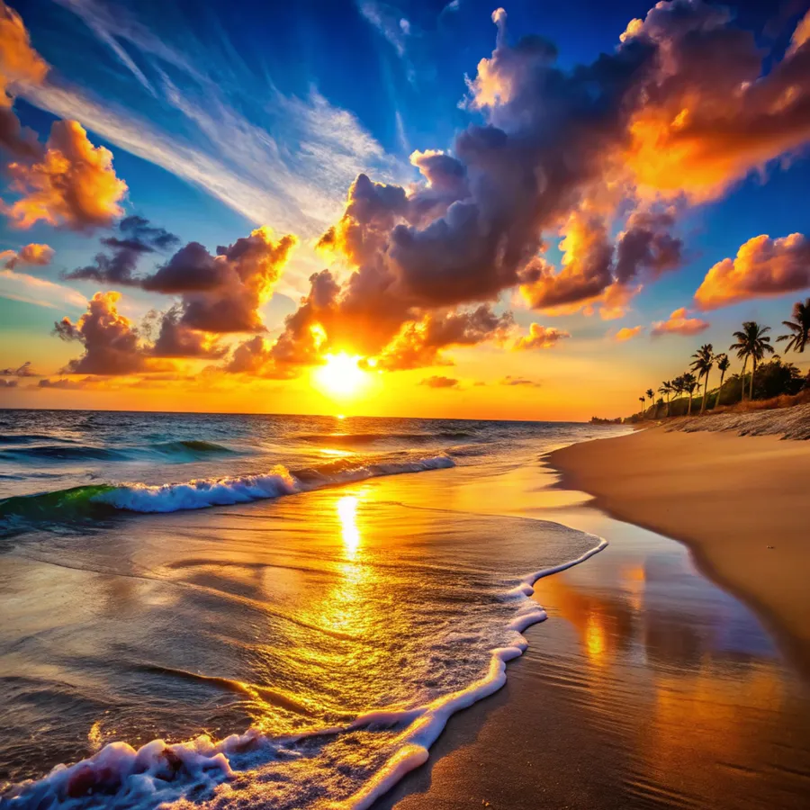 Landscape,tropics,africa,down,gold,surf,dawn,dusk,indian,lagoon,ocean,palm,sun,sunrise,tide,wave,cloud,coconut,leaf,nature