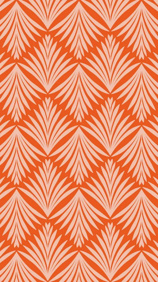 Vibrant Terracotta Background With Symmetrical Leaf Motifs Creating A Bold And Elegant Decorative Pattern Ideal For Textiles And Wallpapers.