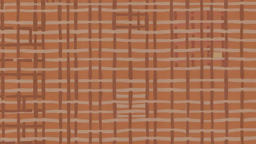 Close Up Of Terracotta Surface Featuring A Woven Grid Pattern With Intersecting Lines In Varying Shades Of Brown And Orange.