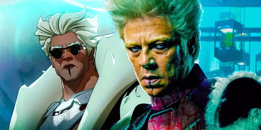 Split Image Comparing Animated And Live-action Versions Of The Collector Character, Featuring Distinctive White Hair And Futuristic Attire.