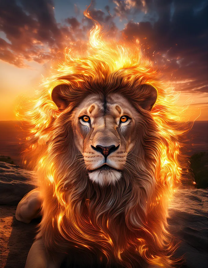 Lion,fire,mane,nature,power,wildlife,sunset,art,digital,portrait