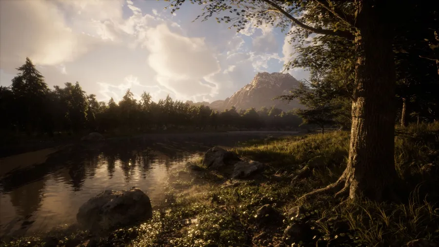 Stunning Photorealistic Environment Showcasing Advanced Lighting And Detailed Natural Scenery Created With Unreal Engine 5 Technology.