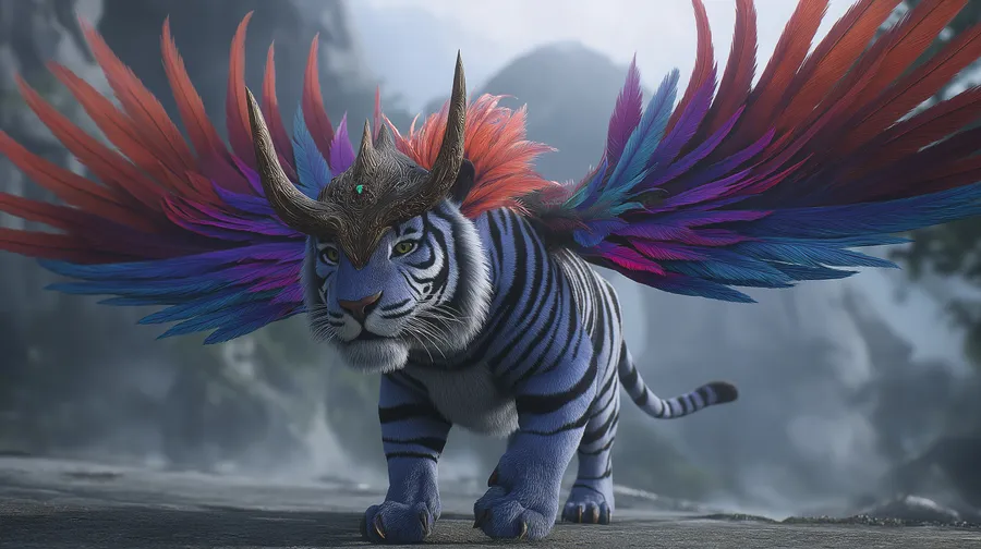 Vibrant Winged Tiger-like Beast With Ornate Horns Wallpaper